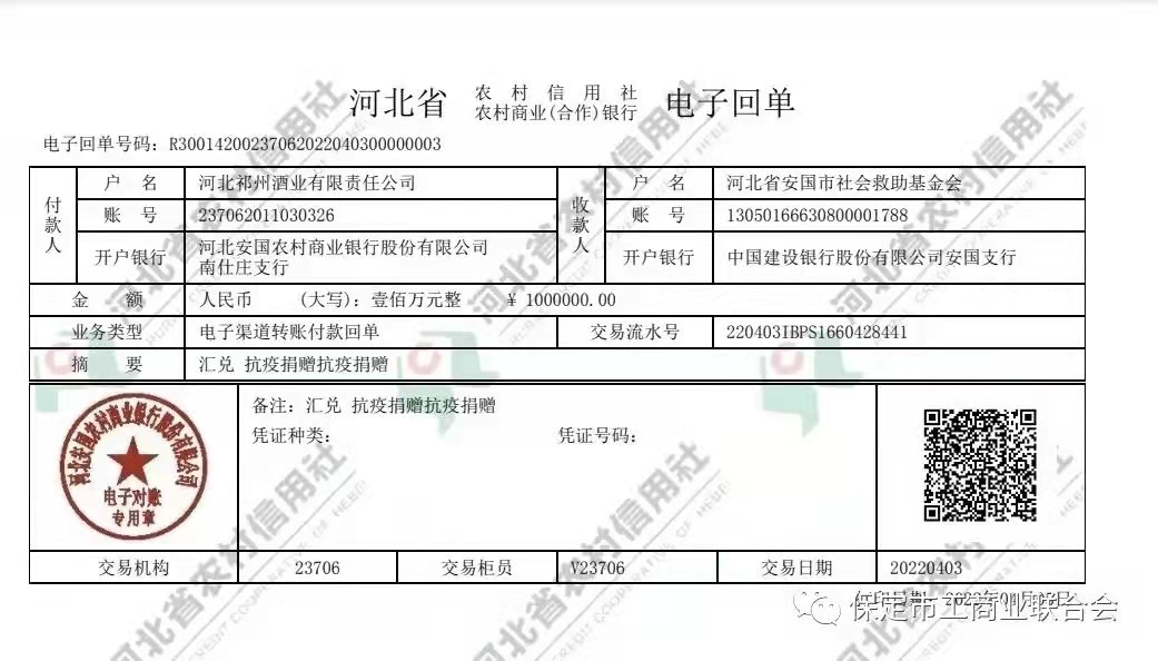 祁州酒業為安國市抗疫工作捐款100萬元